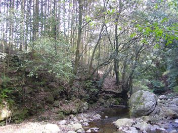 食後、川のせせらぎを聞き、森林浴で思いっきりマイナスイオンを吸って、